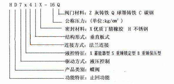 液控缓闭止回阀蝶阀 型号编制